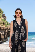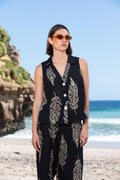 Blusa tipo gillette con hojas doradas sin mangas.