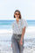 Blusa cuello mao con vuelos, escote en V y estampado de corazones azules. Composición: 83% viscosa 17% poliamida