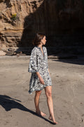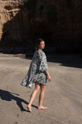 Vestido estampado corto mangas 3/4 y escote en V. Talla única.