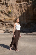 Pantalón largo de lino con costura vertical en la parte delantera. Talla única.