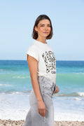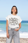 Polera color crema con estampado 1983 de animal print. Composición: 90% algodón 10% elastan.