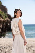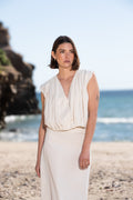 Top sin mangas, cruzado adelante y pinzas en la espalda., englobado. Talla s, m y l.