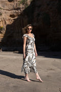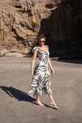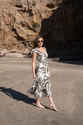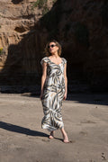 Vestido largo estampado con la parte superior elasticado. Talla única.